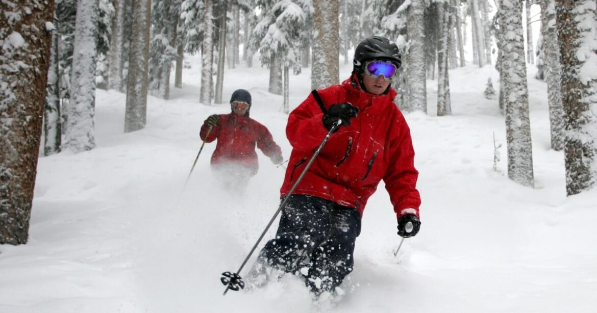 People ski between the trees in the deep powder at Telluride Ski Resort on March 10, 2006.