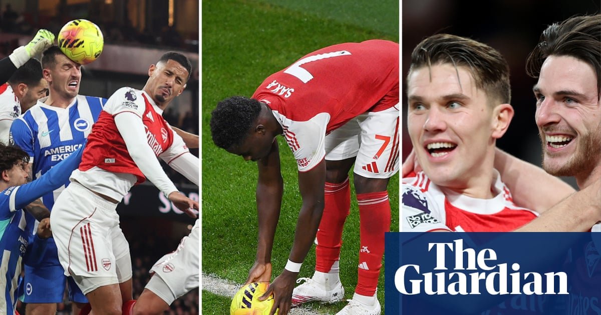 By shifting players’ starting positions, pressuring the goalkeeper and varying the direction of deliveries, Arsenal can create a level of chaos that is advantageous. Arteta’s side have scored seven goals from a knock-down, flick-on or goalmouth scramble after a set piece this season. Leandro Trossard’s winner at Fulham was created by Gabriel flicking Saka’s delivery to the far post, where the Belgian was unmarked. Trossard turned provider in this week’s victory over Inter: his header aimed back across goal clipped the bar and fell for Gabriel Jesus to score. The panic that Arsenal create in defences has also led to two converted penalties and four own goals, with the Wolves keeper Sam Johnstone and Brighton’s Giorginio Rutter finding their heads scrambled in matches at the Emirates Stadium last month.
