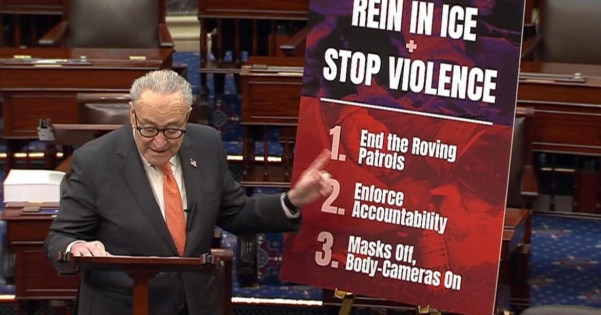 Senate Minority Leader Chuck Schumer spoke on the chamber’s floor ahead of a procedural vote to advance a government funding package. Schumer said the bill to fund the Department of Homeland Security “still needs a lot of work” and listed out three goals Senate Democrats have agreed on to “rein in ICE and stop the violence.”