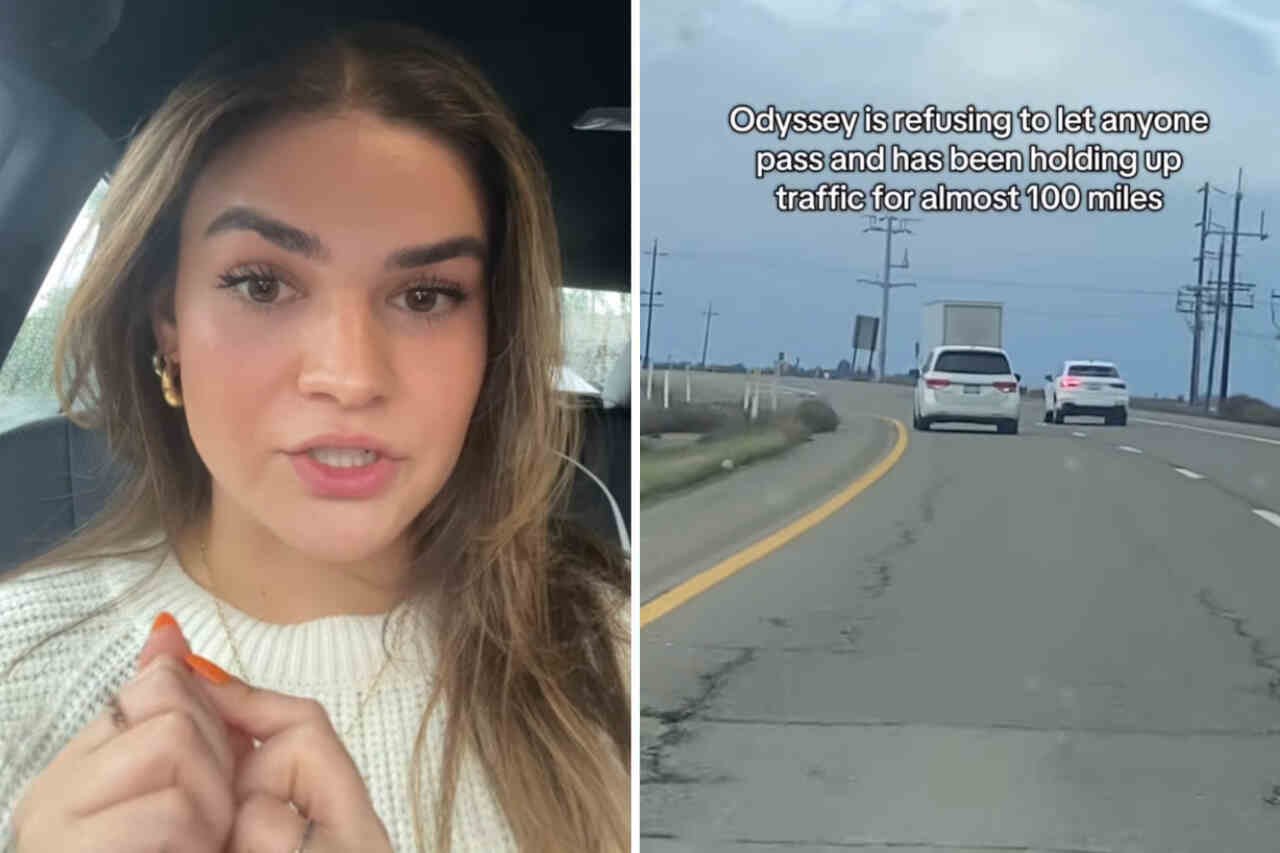「OdysseyThe driver won’t let anyone pass. When we or other cars try to pass, they accelerate and don’t let us pass. When we or another car gets behind him, he slams on the brakes,” she wrote in the caption.