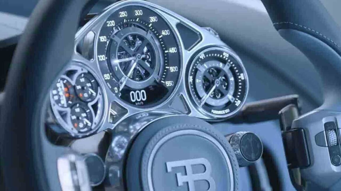 Unlike many luxury car manufacturers, Bugattiis new TourbillonThe analog method was maintained. The instrument panel is made by a Swiss company specializing in complex mechanical watch movements. ConceptIt was developed in collaboration with