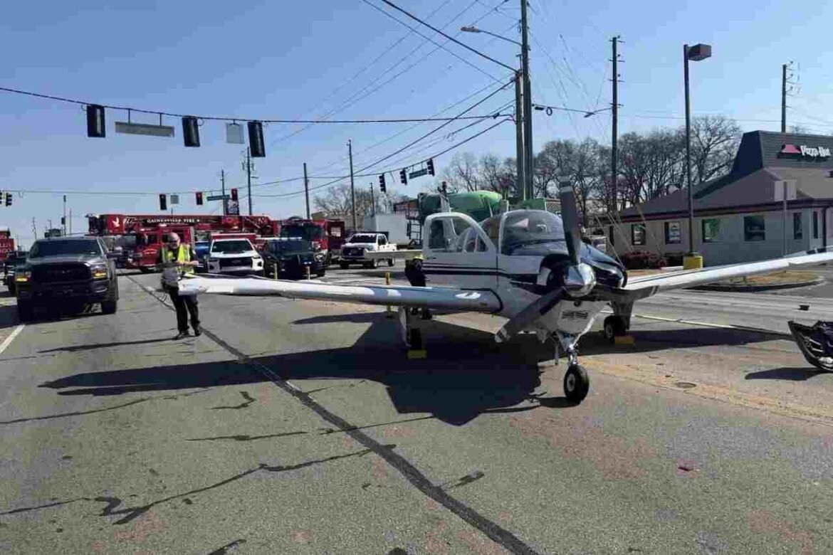 A small plane collided with three cars while making an emergency landing in the middle of the road in Gainesville, Georgia (USA).