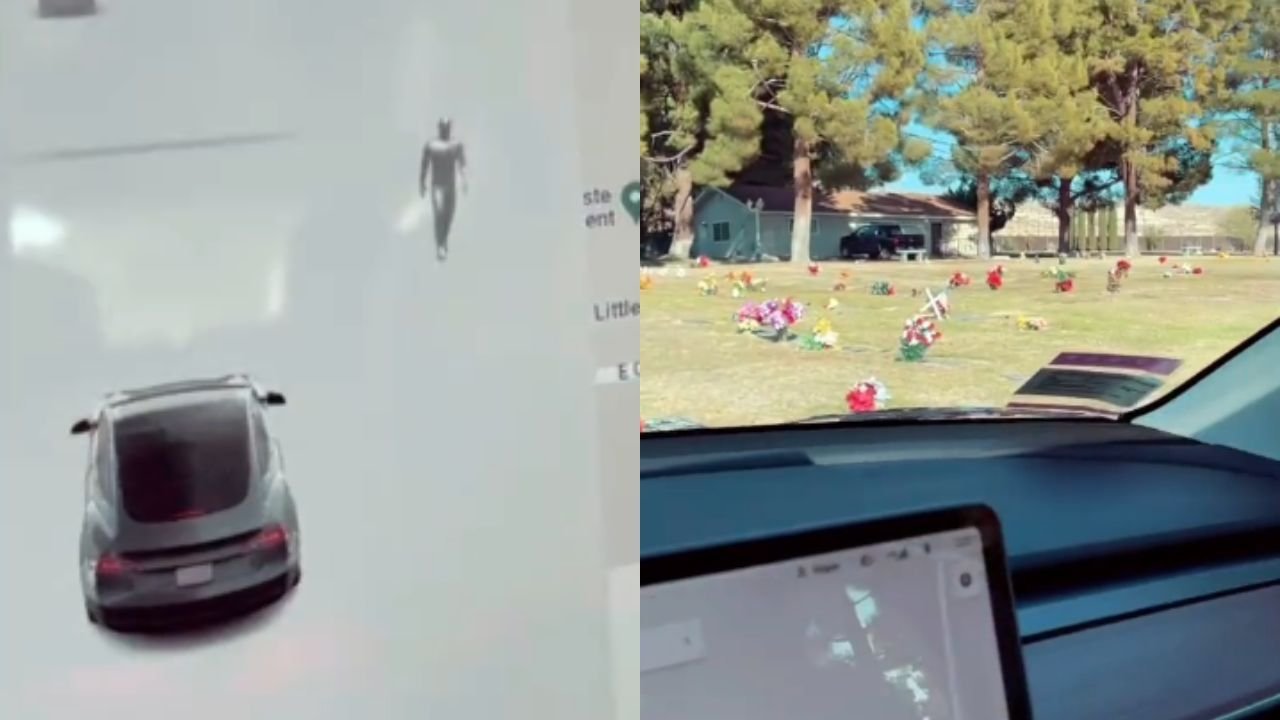A Tesla driver was terrified in a TikTok clip after his car detected the presence of people in an empty cemetery. A video from 2022 has once again gone viral on social media.