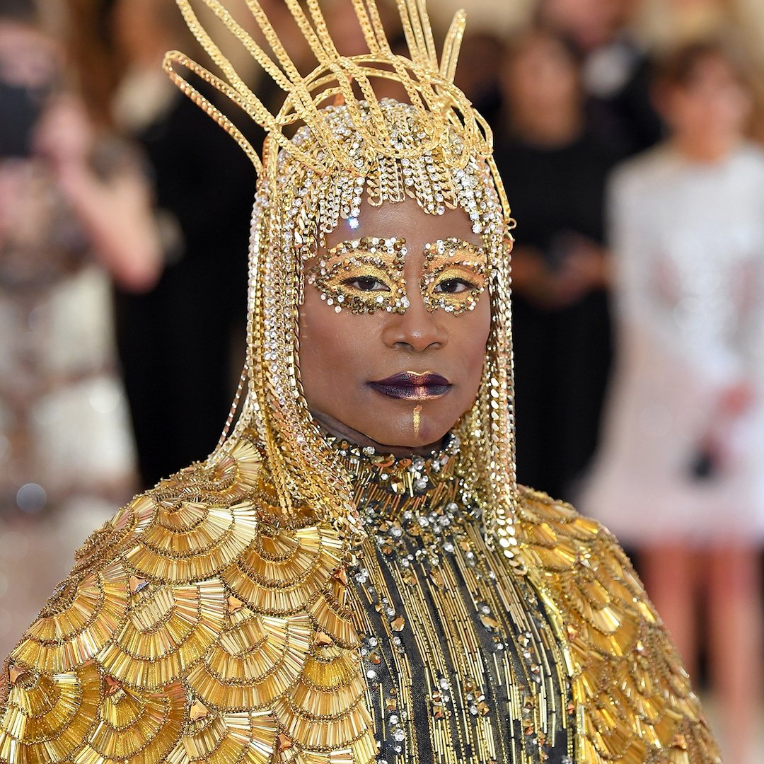 At the 2019 event, whose “Camp: Notes on Fashion” theme inspired many over-the-top looks, Billy dressed as an Egyptian god in an all-gold outfit complete with wings and a chain headdress. He also arrived on the carpet on a cushioned platform carried by six shirtless men in matching gold pants.