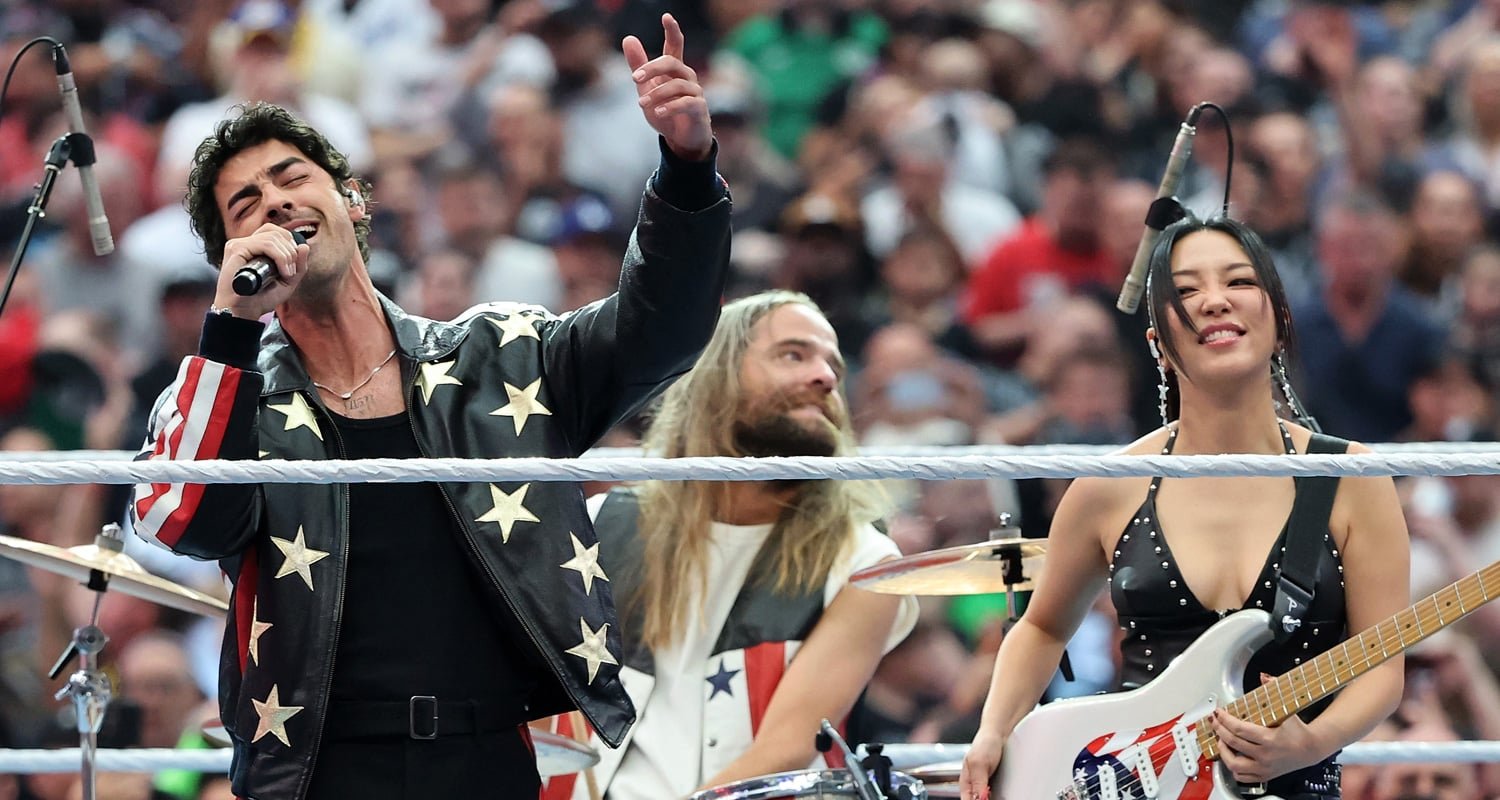 The 36-year-old singer was on hand to perform “The Star-Spangled Banner” at the start of the WWE event, where he was joined by his DNCE bandmates JinJoo Lee and Jack Lawless.